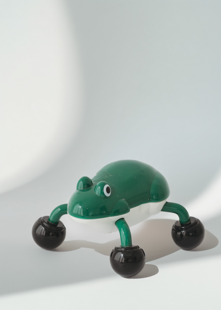 MASAJEADOR MANUAL PLASTICO EN FORMA DE RANITA A PILA. (NO INCLUIDA)
