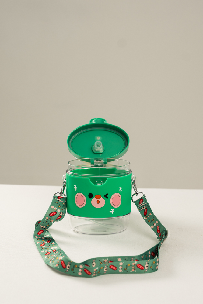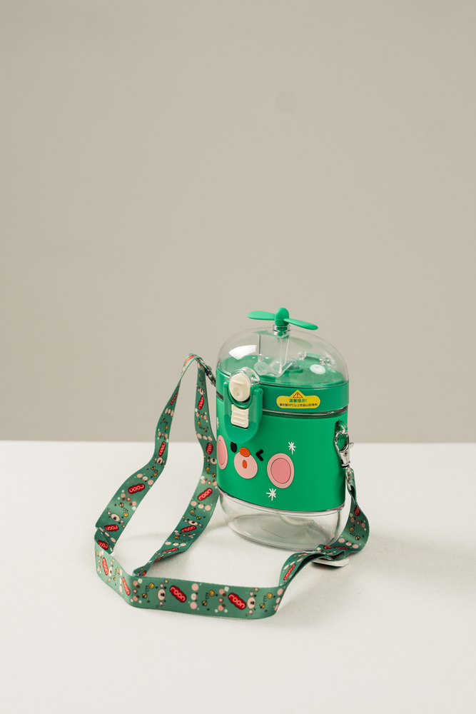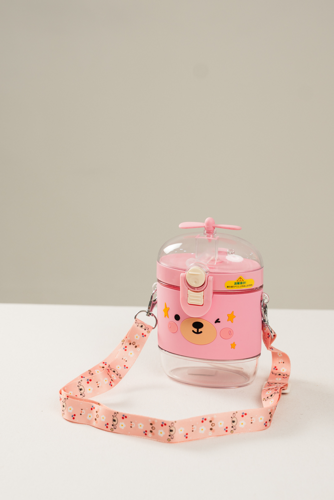 BOTELLA PLASTICA INFANTIL CON CORREA. VIENE EN 4 COLORES.