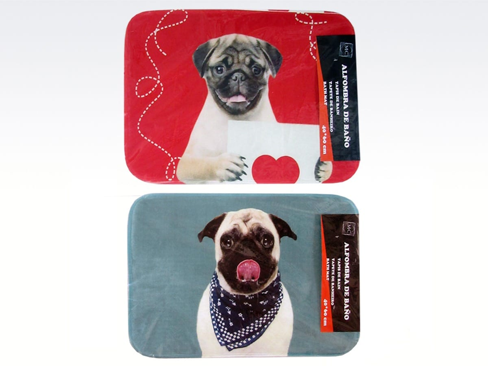 ALFOMBRA DE BAÑO CON DISEÑO DE PERRITOS. VIENE EN DOS COLORES.