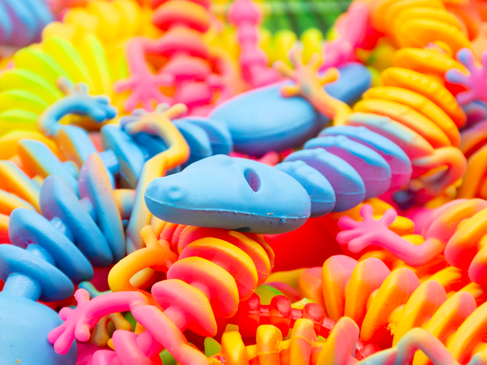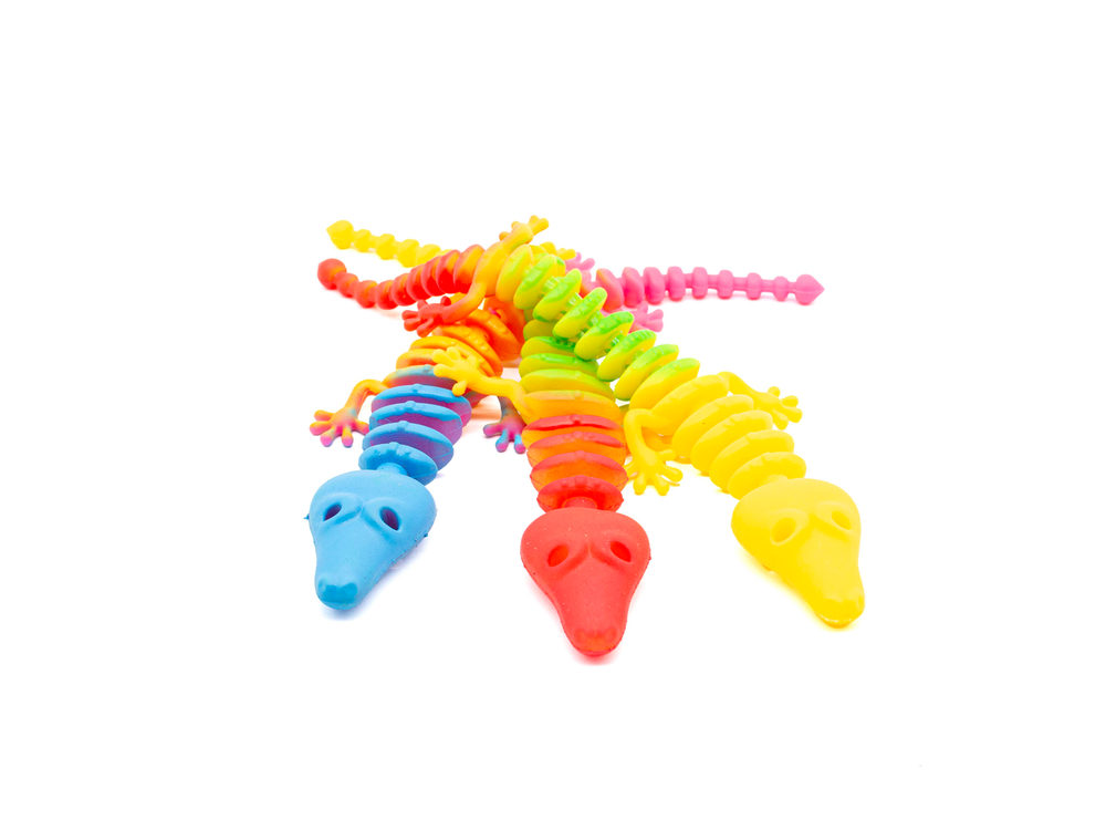 CAJA POR 50 UNIDADES DE FIDGETS (Anti-estrés) EN FORMA DE COCODRILO. VIENEN SURTIDOS DE COLORES.