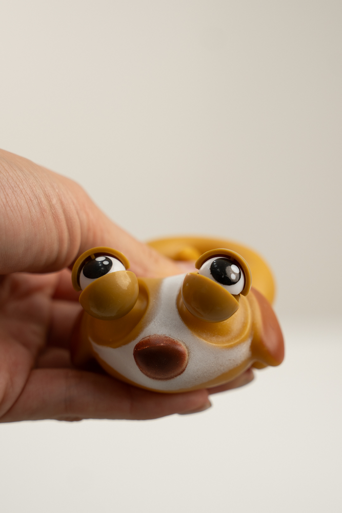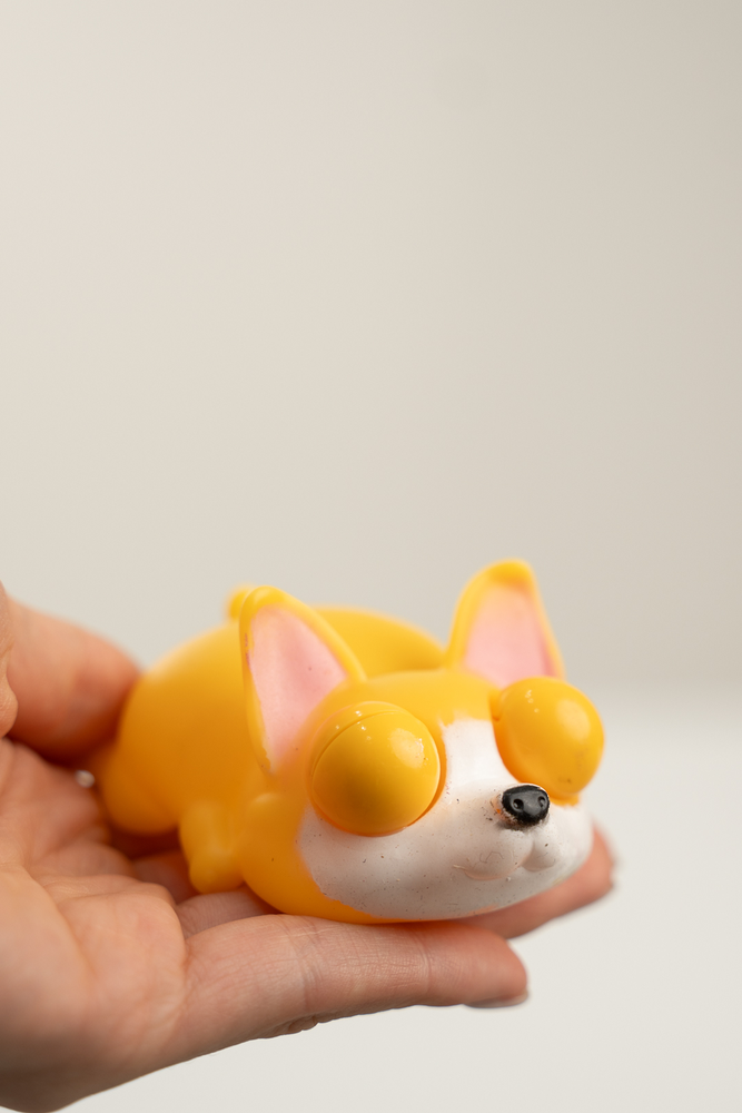 CAJA POR 12 UNIDADES DE PERRITOS ANTI-ESTRESS CON OJOS SALTONES AL APRETARLOS.
