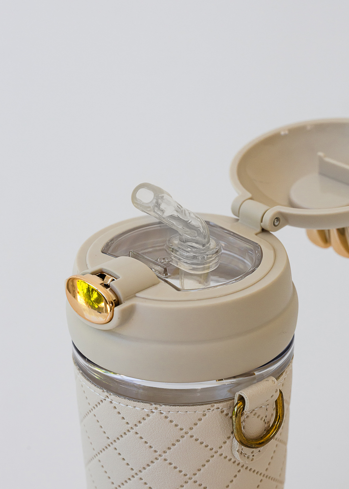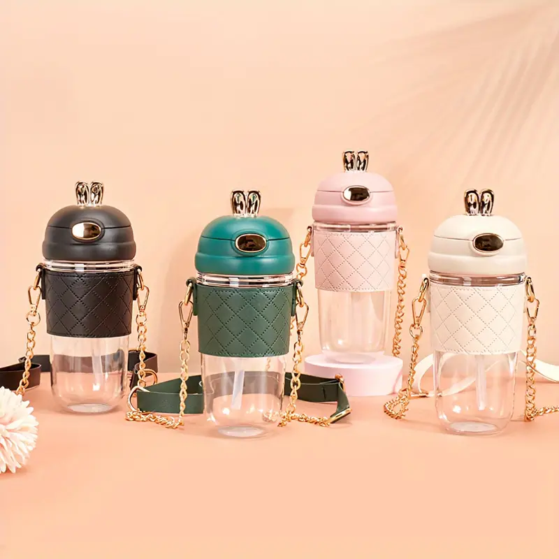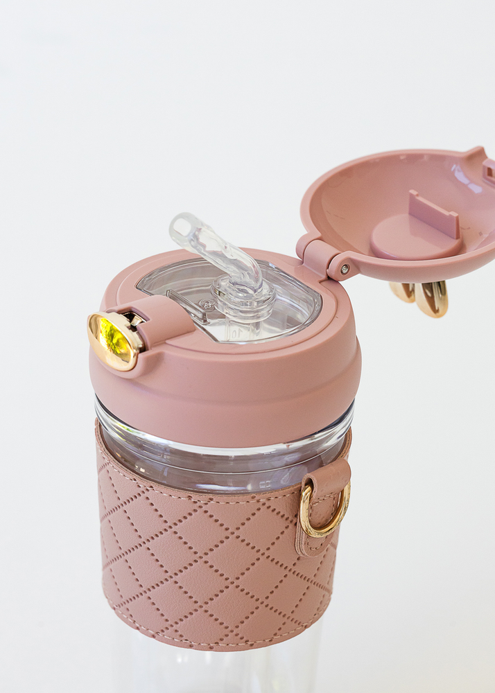 BOTELLA CANTIMPLORA CON PICO DE SILICONA Y CORREA DE METAL. VIENE EN 4 COLORES.