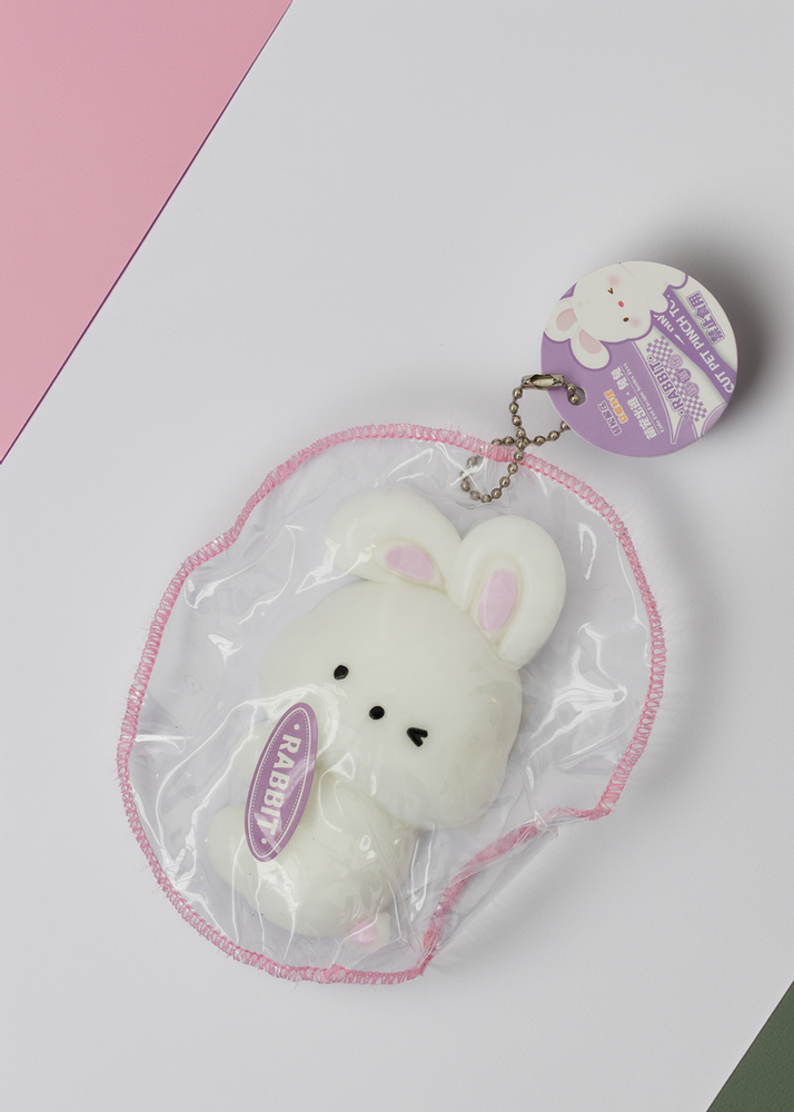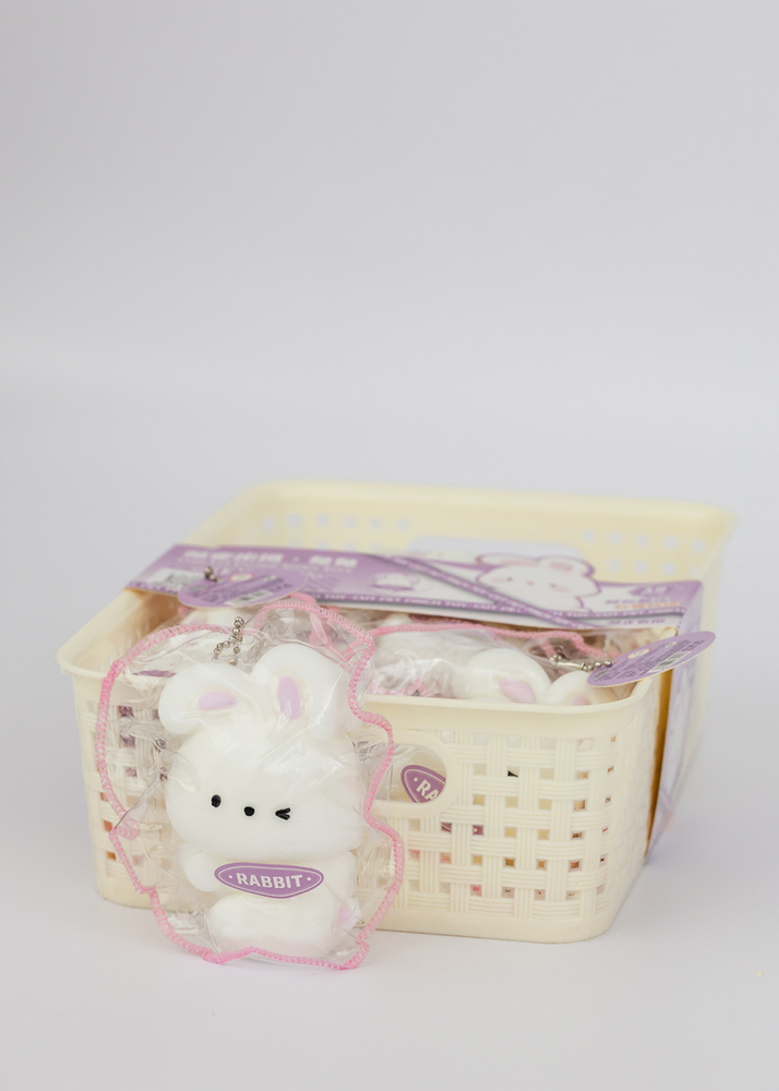 CAJA PLASTICA POR 18 UNIDADES DE SQUISHIES EN FORMA DE CONEJITOS CON AROMA FRUTAL. UNICO COLOR.