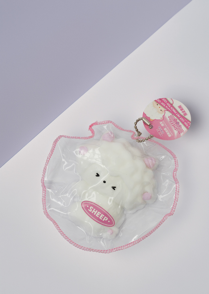 CAJA PLASTICA POR 18 UNIDADES DE SQUISHIES EN FORMA DE OVEJA CON AROMA FRUTAL. UNICO COLOR.