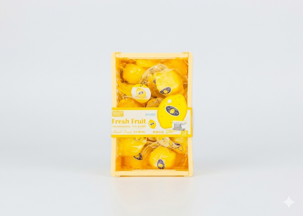 CAJA PLASTICA POR 18 UNIDADES DE SQUISHIES EN FORMA DE LIMON CON AROMA FRUTAL. UNICO COLOR.