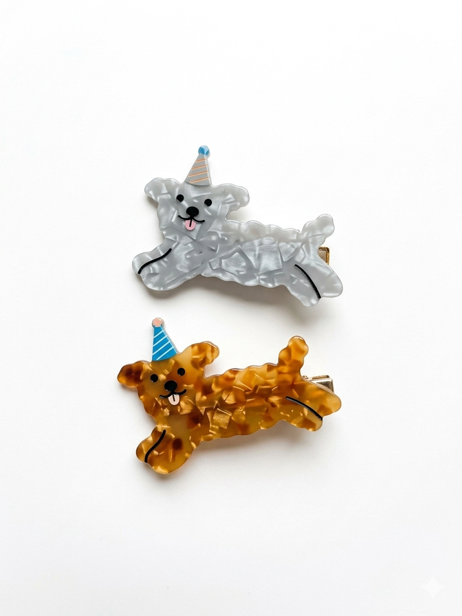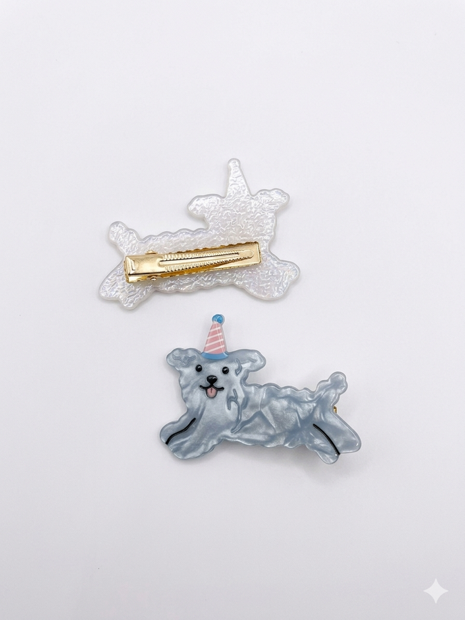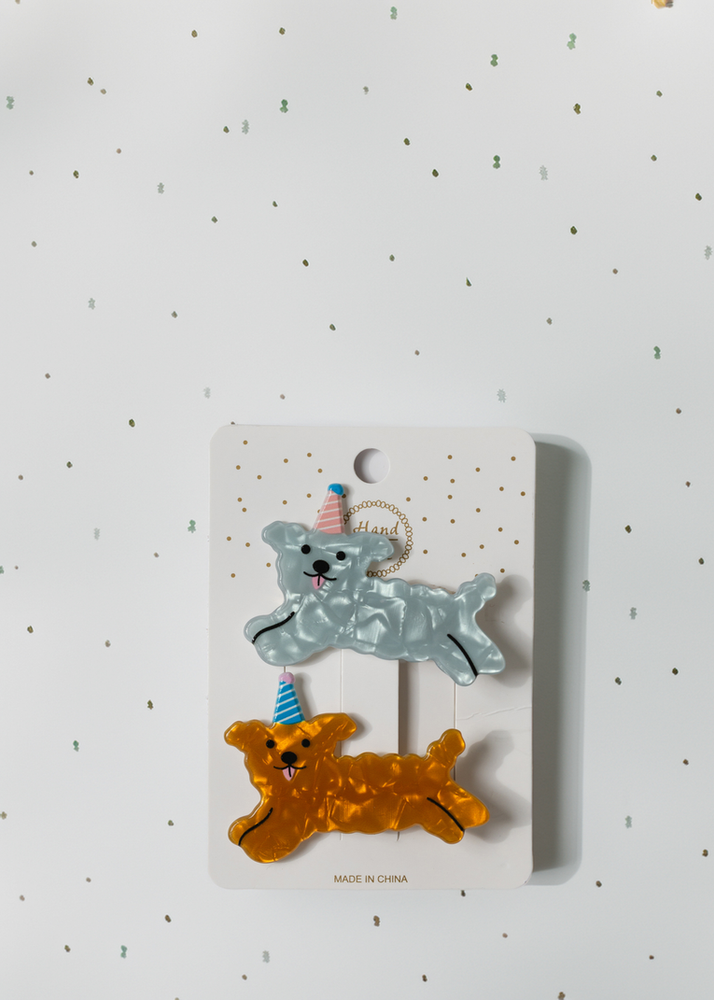 BOLSA POR 12 SET/2 DE CLIPS PERRITOS PARA EL PELO ACRILICOS. UNICO COLOR.