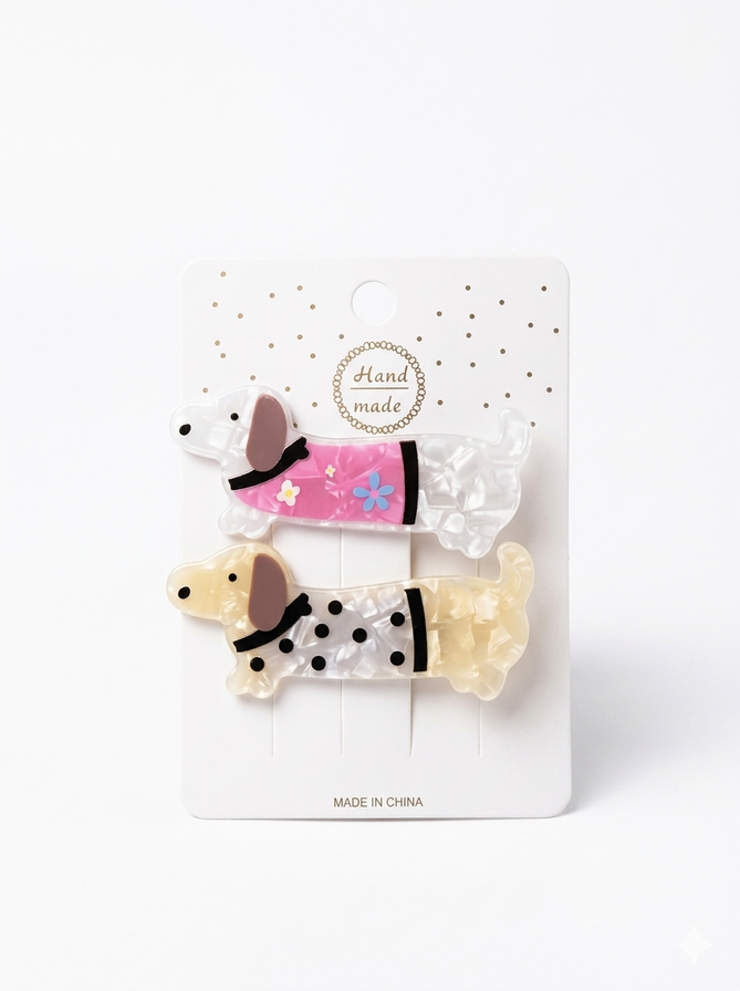 BOLSA POR 12 SET/2 DE CLIPS PERRITOS PARA EL PELO ACRILICOS. UNICO COLOR.