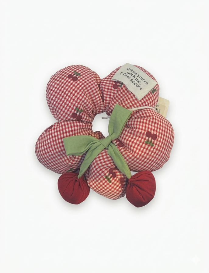 BOLSA X 12 GOMITAS DE PELO DE TELA CHERRY. UNICO COLOR.