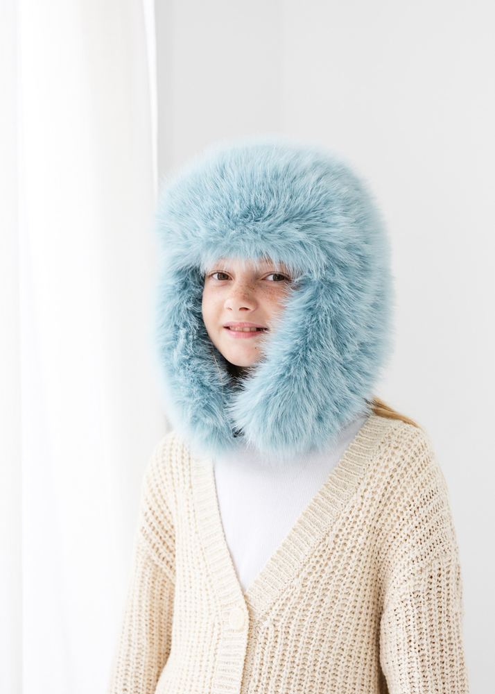 GORRO PELUDO CELESTE.