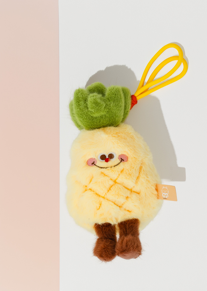PELUCHE EN FORMA DE ANANA CON STRAP PARA COLGARLO EN CUALQUIER LADO. TIENE AROMA FRUTAL.