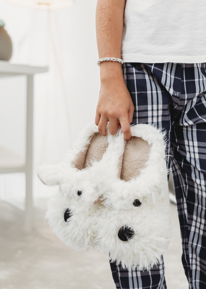PANTUFLA EN FORMA DE PERRITO PELUDO. UNICO MODELO Y COLOR. VIENE EN 3 TALLES SURTIDOS (36-37 / 38-39/ 40-41)