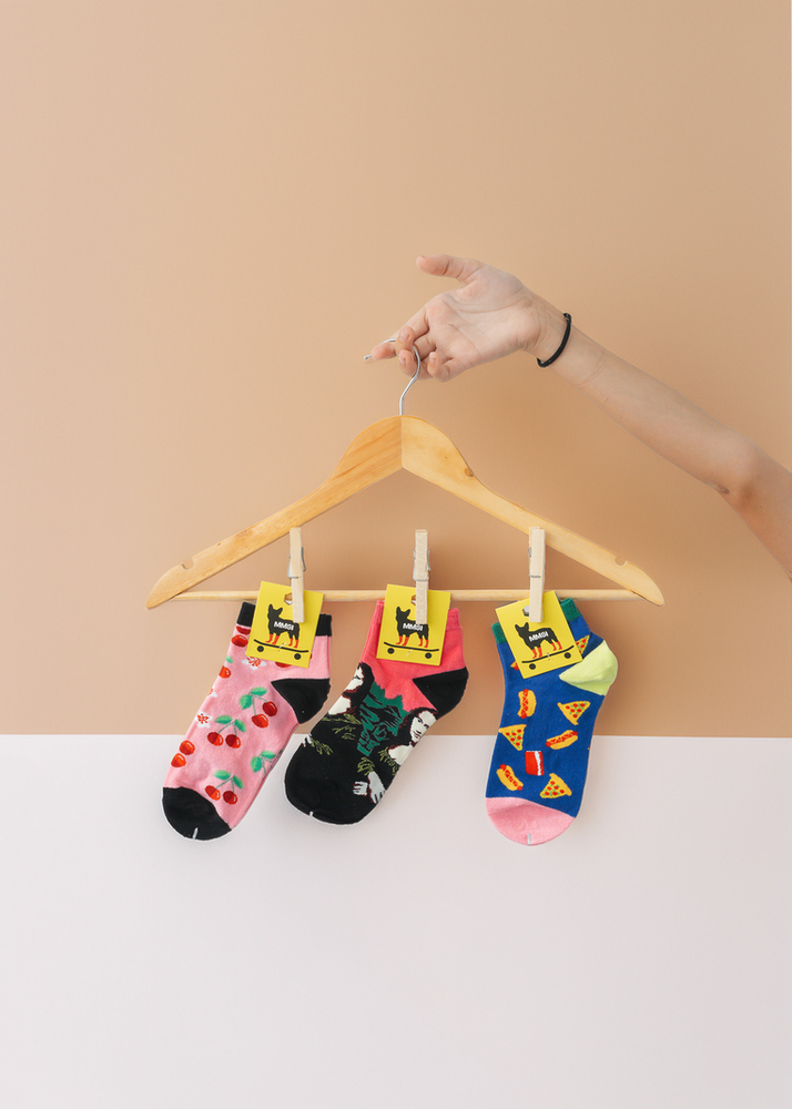 BOLSA POR 12 UNIDADES DE MEDIAS SOQUETE POLIESTER SURTIDAS DE COLORES.