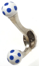 PERCHERO DE METAL CON DOS BOLITAS DE CERAMICA CON LUNARES AZULES. UNICO COLOR.