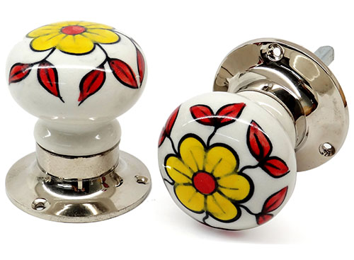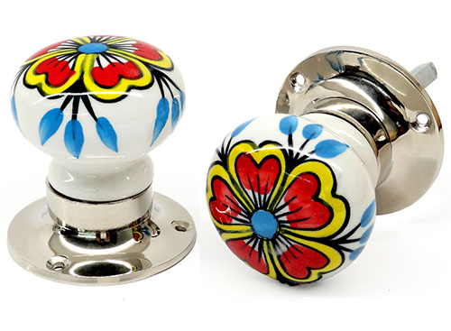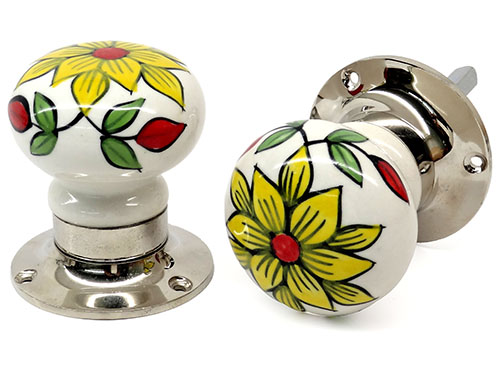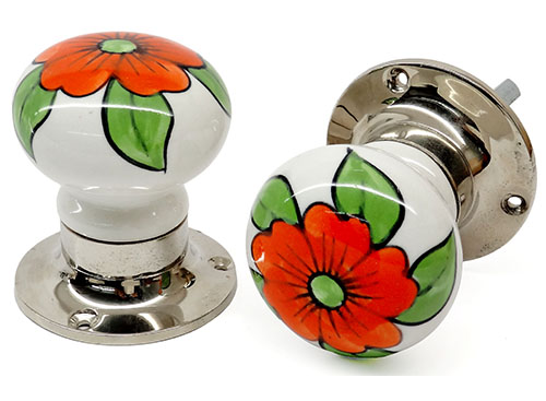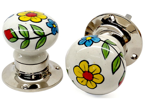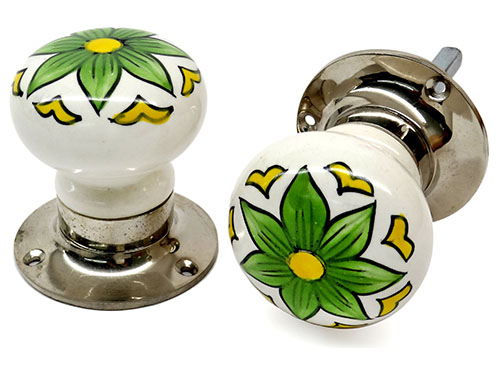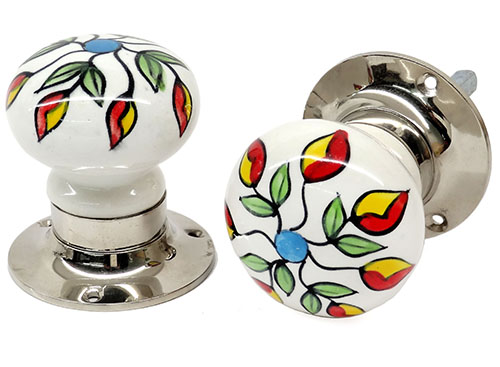 SET DE PICAPORTES DE CERAMICA CON DISEÑOS SURTIDOS DE FLORES.