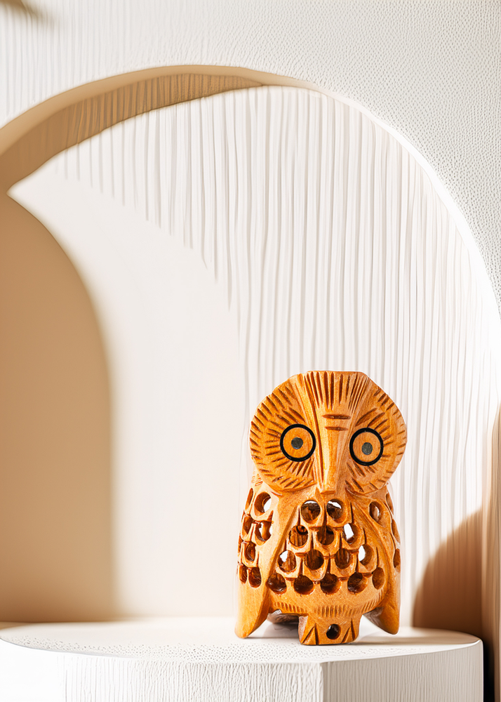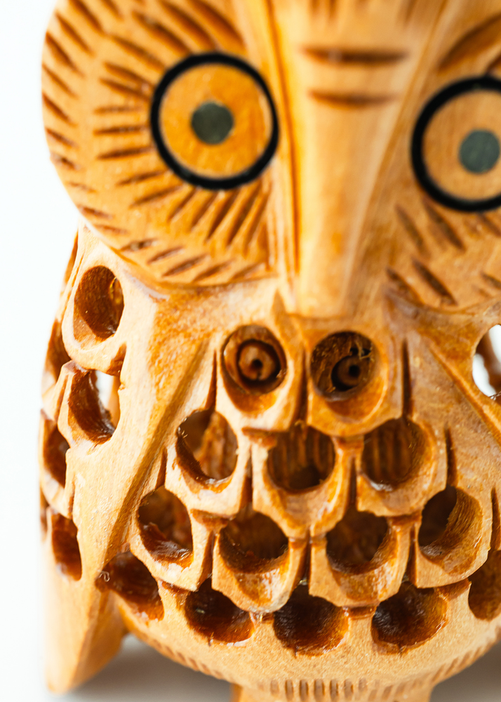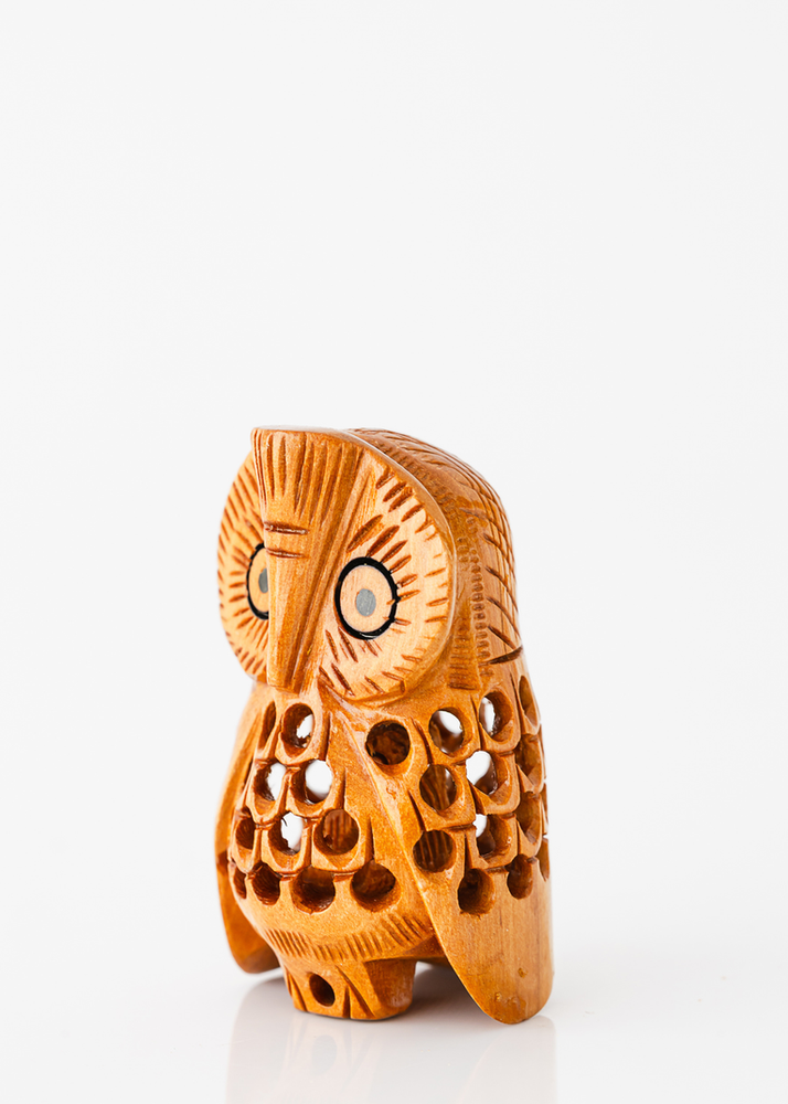 BUHO DE MADERA CALADO DECORATIVO. UNICO COLOR.