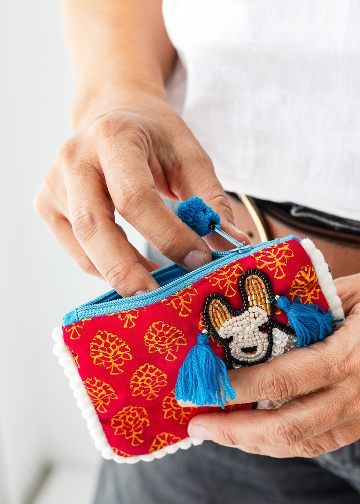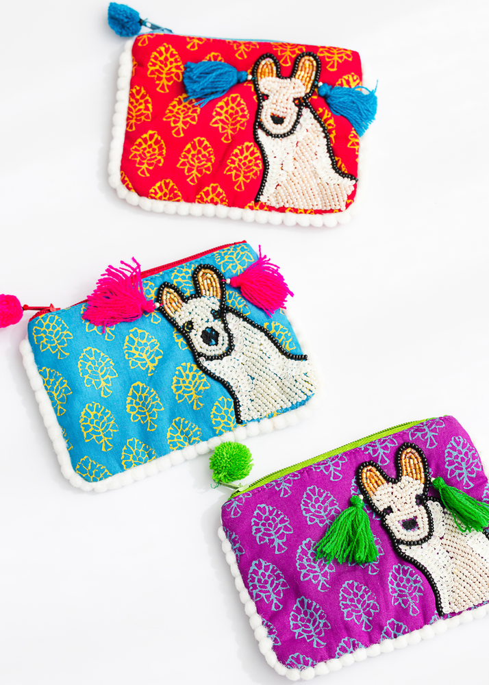 MONEDERO DE LLAMA CON DETALLES EN CANUTILLO. VIENE EN 3 COLORES SURTIDOS.