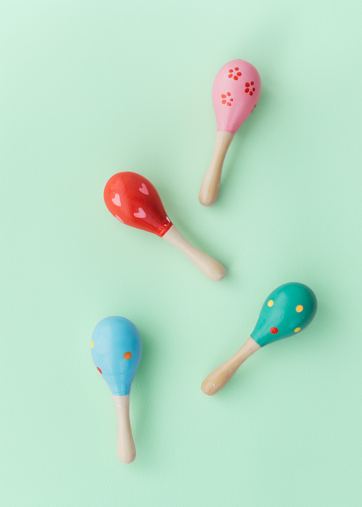 MINI MARACAS DE MADERA INFANTILES SURTIDAS DE COLORES. TAMBIEN SE PUEDEN UTILIZAR DE FORMA DECORATIVA.
